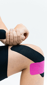 A aplicação de Kinesio favorece o movimento corporal. Protege a articulação de dor e lesão. Tecnologia de estimulação cutânea.